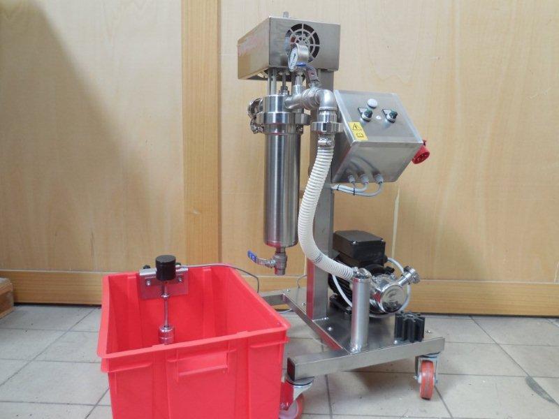 | Equipements | Filtre équipé d'une pompe auto amorçante, d'un carter inox, de 3 éléments filtrants inox porosité 100 – 150 et 200 μm interchangeables suivant type de jus, d'un manomêtre et d'une vanne manuelle pour décharge côté trouble, d'un mireur. Moteur électrique pour rotation de l'élément filtrant sur un racleur, |