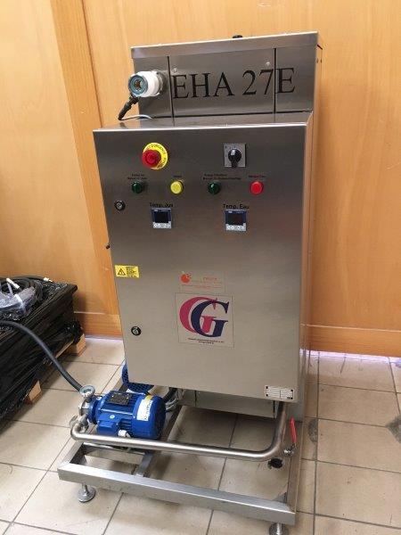 | Equipements | Pasteurisateur avec échangeur coaxial, régulation des températures eau et jus, pompe à jus. Energie électrique 400 V - 27 kW - 50 Ampères - Excellent état. |